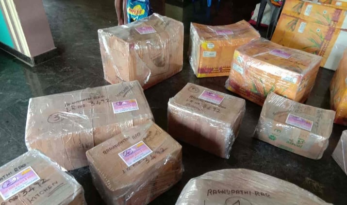 Our team safely loads packed goods onto trucks, maintaining care and efficiency.